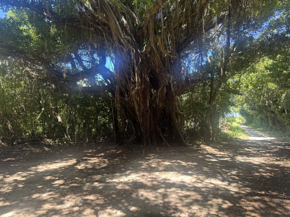 イシキ浜からハビャーン(カベール岬)に向かう道に巨大なガジュマルの木がありました。