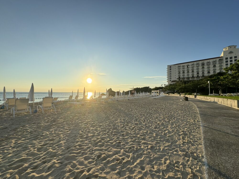 「ホテル日航アリビラ」はリゾートホテルで、目の前には「ニライビーチ」広がっていて客室からオーシャンビューを楽しむことができます。