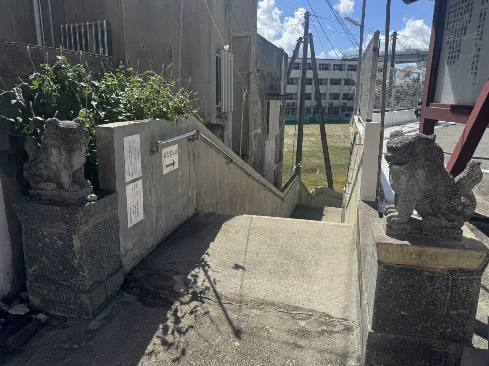天久宮を象徴する特徴は、傾斜地を利用した「地下三層」とも言える独特な構造にあります。